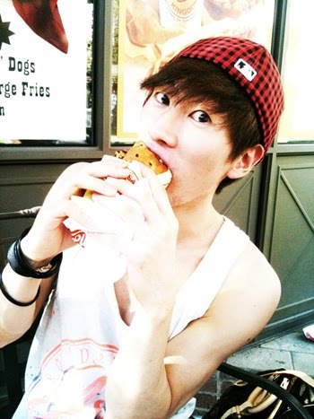 Super Junior Eunhyuk wants to go to America again because of (their) hotdogs. On the 13th, Eunhyuk stated in his twitter "kekekekekeke (,) if (I) were to go to the America again (,) I want to eat the hotdogs (there). I think I'm crazy, it just had a different taste (from the ones here)" tagged along with a photo.