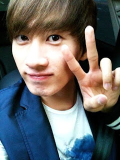 In the photo, Eunhyuk is seen with smiling eyes that were shining and a V-sign. Normally when the other people are showing a V-sign, the other three fingers would be closely apposed together, in contrast with Eunhyuk's which looks a little different**.