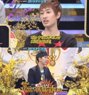 Quite humiliated, MC Lee Seung Gi responded in a cool way, "I would also like to live as Eunhyuk for a day, I want to dance like him." He added, "But I will have to decline looking like him", arousing laughter on the set.