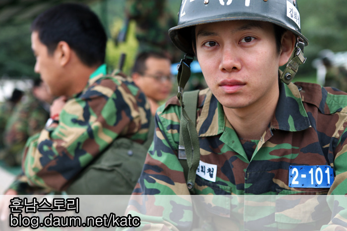 Super Junior Kim Hee-Chul finally completed basic trainings at KATC. Since last September 1, many photos and video clips of him training at KATC are released to the public, and they caught fans' attention. In the final interview, Kim Hee-Chul looked back memorable days and said, "I was worried alot about training at KATC because of my injured knee, but I enjoyed training with other recruits." Also, "many fans worried about me being skinnier, but I actually gained 3 kg because of having a regular schedule and life pattern!"