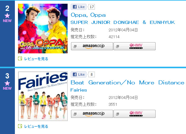 Hallyu group Super Junior members Donghae and Eunhyuk rose to #2 on the Oricon Daily Chart with Japanese version of their hit duet single “Oppa Oppa”.