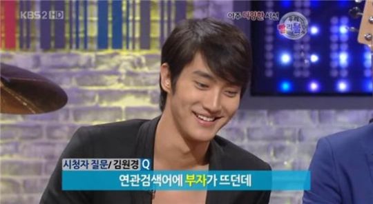 Because the MCs and the guests– 2PM’s Taecyeon, CN Blue’s Jung Yonghwa– started teasing Siwon, he seemed embarrassed and quickly passed the question it with a laugh.