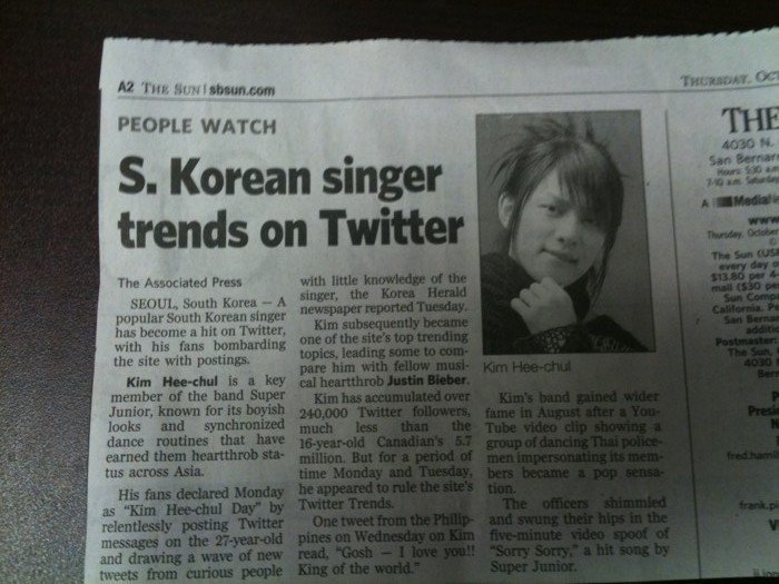 The article then goes on to compare the amount of followers Heechul has compared to the popular Canadian/American singer, Justin Bieber and although Heechul does have slightly less, I think it's safe to say the amount of love and support ELFs show towards Heechul is enough.