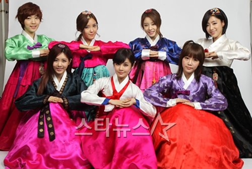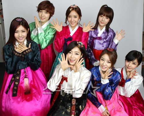 Girl group T-ara has dressed up in traditional hanboks to greet their fans.