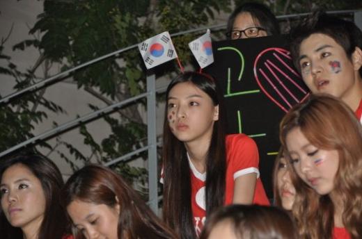Firstly revealed member is Jin Hye Won, as seen in the photo cheering for South Korea in the world cup.