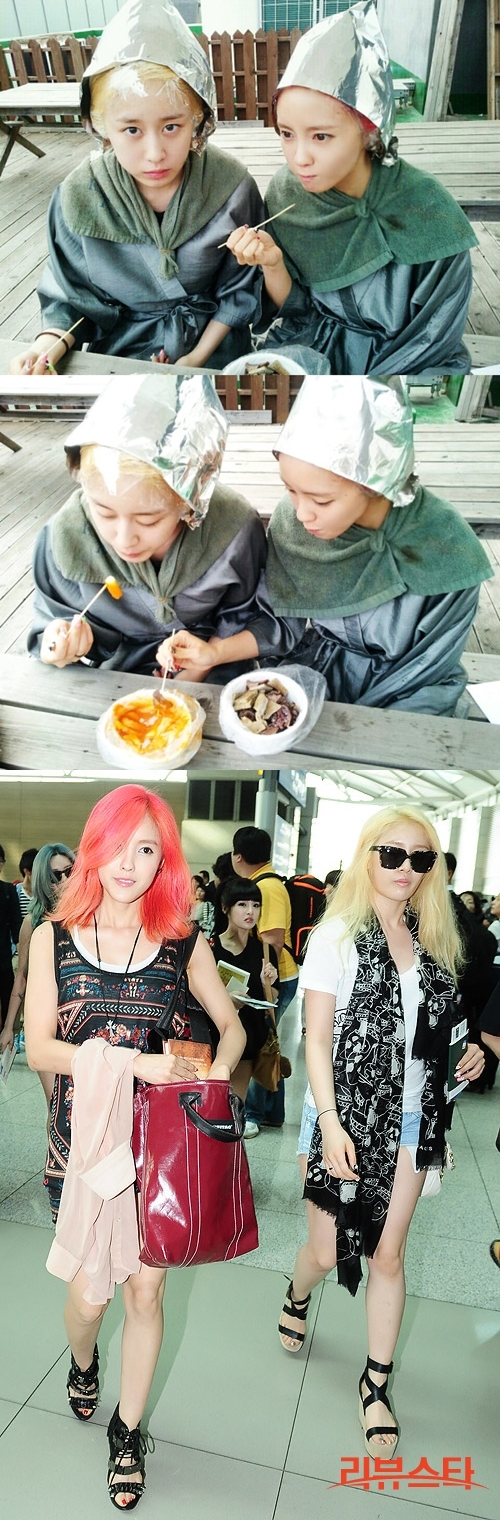 It looks like the two girls of T-ara are in the middle of getting a new hairstyle with their hairs wrapped in foil and their body covered with a towel and them eating their favorite foods looking like aliens. Netizens commented, "Jiyeon as blonde looks really pretty", "Wow, such striking hair colors", "I barely recognized them". Meanwhile, the girls will be making their comeback this 3rd of July with a new album "Day by Day".