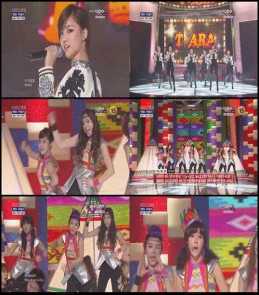 They then performed 'YaYaYa' in their Indian Girl costumes sporting a cute look. With its addictive melody, arrangement, and unique lyrics, T-ara came back with a fresh dance-pop routine.