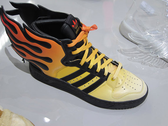 On SHINee's Replay Japanese version Teaser we could see that Taemin wears a very unique shoes which has wings of flames. It turned out that it was Jeremy Scott for adidas originals by originals for 2011 Summer Collection which is called Flames JS Wings. The prize of this Shoes is $185.00