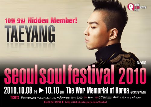 Taeyang will be performing on Saturday, October 9th at the Bongsan War Memorial Peace Square and Se7en will be joining him for this SUPER SOUL NIGHT performance. Other artists performing include Supreme Team, DJ DOC, mAd sOuL cHiLd, UV, Musiq Soulchild, Sean Kingston, and Jay Park!