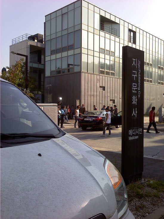 Arriving at work this morning, I saw 'The Fugitive Plan B' being filmed in front of our office in Publishing Complex. They are still shooting it..World star Rain is there. They asked us not to take pictures, so I sneaked shots in our office.~