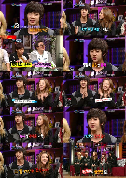 When asked by the MC’s if anyone could testify to her enormous popularity, her brother Thunder from MBLAQ confirmed that she was indeed very popular. MC Kim Seong-Su then asked if he ever took advantage of her popularity and Thunder shared a story of how one of his friend’s family owned a PC cafe. His friend suggested that if Thunder could give him his sisters phone number, than he could use the cafe for free and forever.