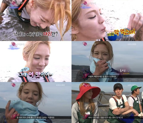 The cast then went to the mud flats where Hyoyeon tried her best and did not hold herself back even though she was not feeling well, showing how passionate she is.