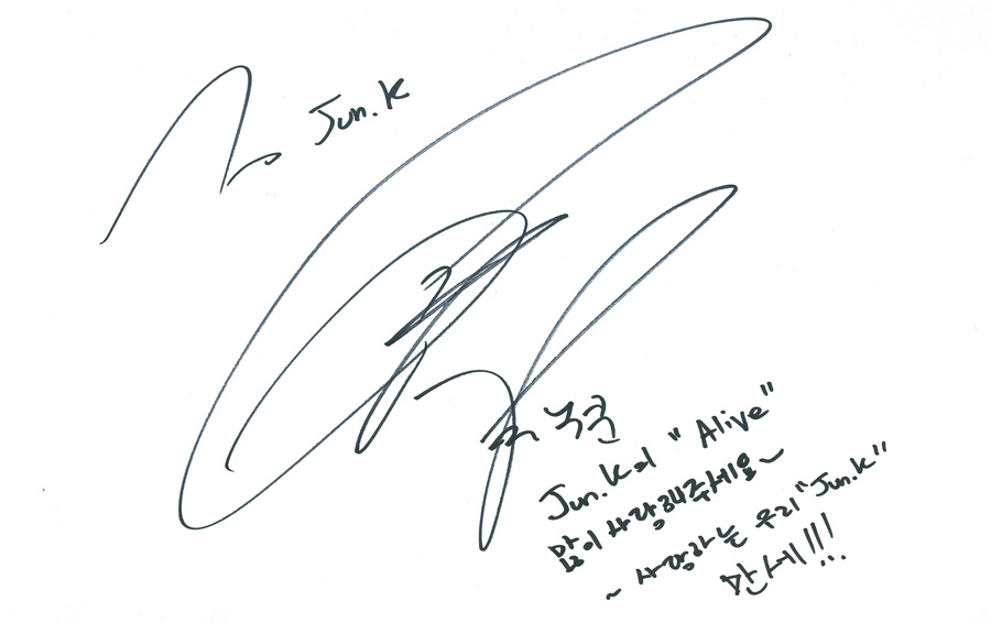 JUNSU: Jun.K's self-composed song, "ALIVE"!! I invite you to my music world! Please give it lots of love. -Jun.K-