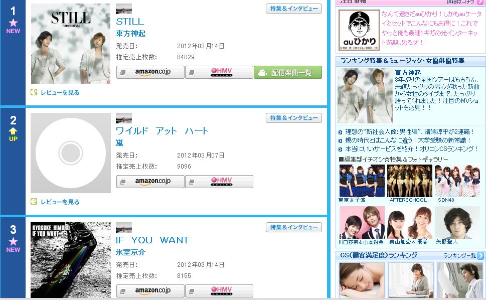 According to Oricon Chart, TVXQ's latest Japanese single "STILL" claimed first place on the daily singles chart after selling 84,029 copies on the first day. The duo beat out the mega popular group Arashi, LEAD and Himuro Kyosuke.