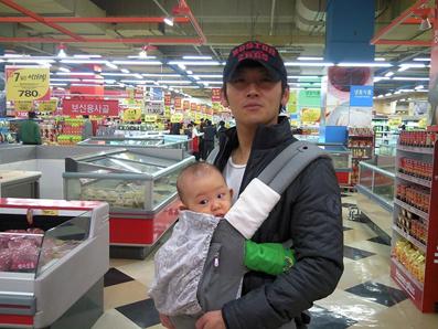 In the photo revealed recently, Park JiHeon was posing for a photo carrying his 2nd son while shopping at a mart. His 2nd son was born last August, and is named GangChan.