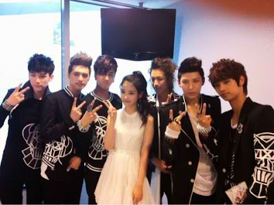 Rookie idol group VIXX was recently photographed with singer IU.