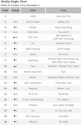 [News] Weekly Singles Chart: Oct 26-Nov 1 & Weekly Album Chart: Oct 26-Nov 1 Weekly albumsJazNov 06, 2009 Share 0 comments Editor : Lynn Kim lynn2878@asiae.co.krThe album and weekly singles chart for oct 26-Nov 1 is out.Please click the pictures,for enlargement to read. Tags: Weekly albums, Weekly singles Share Previous articleNext article Leave a comment Name Email Content Post comment