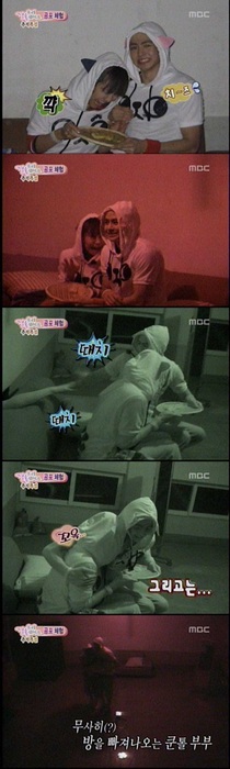 On the Sept 18th episode of MBC’s “We Got Married” (WGM), the three couples, Seohyun(SNSD)-Jung Yonghwa(CN Blue), Jo Kwon(2AM)-Ga in(B.E.G.) and Nichkhun(2PM)-Victoria(f(x)), challenged a horror special.