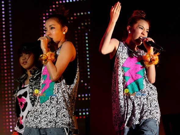 On the 31st of October, 2NE1 performed at Power Of Love Concert. 2NE1 members wore striking colours. As you know, they have been sporting clothings from Horace from their first debut on Inkigayo's stage. Dara wore something similar, with a lightning bolt.