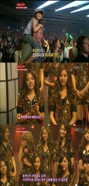 An uncle fan in Paris apparently caught the attention of the production staff who were filming the footages of the concert for the show. SNSD also talked about the memorable times they had in Paris. The girls said, “While we were sightseeing in the city, we met some fans by chance. The fans enthusiastically danced ‘Gee’ in front of us”.