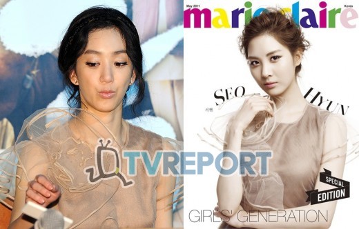 On the other hand, Seohyun wore the same dress for the shooting of Marie Claire’s May edition magazine cover. Her up-style hair emphasized her elegance and vitality. It also made Seohyun’s small yet clear facial features stood out further.