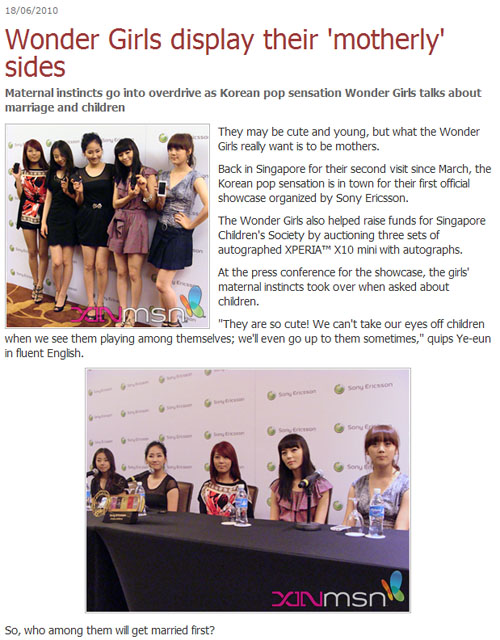 The article interview saying that "Wonder Girls really want to become mothers" was overly and exaggeration of the interpretation of what the Wonder Girls said.