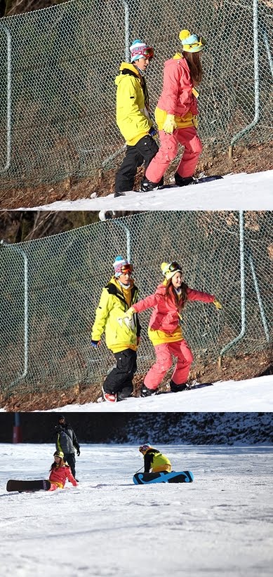 The couple can be seen snow boarding and YongHwa supporting SeoHyun so she can stand on her snow board. The couple's expressions in the photo has attracted attention as the couple seemed to have enjoyed the trip.