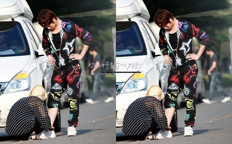 A photo of U-Know Yunho’s stylist tying his shoelaces for him has become a hot topic.