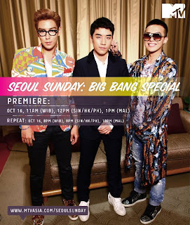 [NEWS]Big Bang Special to be Aired on MTV Asia's "Seoul Sunday" Big BangJannicaOct 01, 2011 Share 0 comments Big Bang SpecialPremiere:Oct 1611am (WIB), 12pm (SIN/HK/PH), 1pm (MAL)Replay: Oct 168pm (WIB), 9pm (SIN/HK/PH), 10pm (MAL)Source: MTV Asia's Seoul SundayC:BIGBANGUPDATES Tags: Big bang, News Share Previous articleNext article Leave a comment Name Email Content Post comment