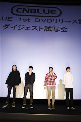 CNBLUE held the preview of their first live DVD at the United Cinema Toyosu located in Tokyo on February 8, and met with their Japanese fans. On the stage before the preview, members of CNBLUE said, “It will be our first time to watch our live video screened at a movie theater, so we also have huge anticipation.”