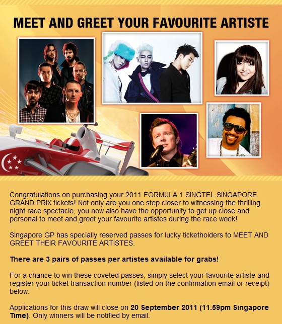 [NEWS]Meet & Greet GD&TOP and Seungri @ F1 Singapore Grand Prix Big BangJannicaSep 14, 2011 Share 0 comments Click on the link to fill in your information!Source: http://www.singaporegp.sg/contest/meet-and-greet.php C:bIGBANGUPDATES Tags: Big bang, Gdragon, Gdtop, News, Seungri Share Previous articleNext article Leave a comment Name Email Content Post comment