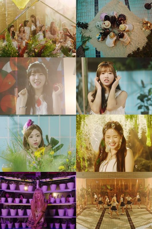 The MV shows the girls in Bohemian stylings as they cutely fooling around in an uniquely decorated empty pool. The song has a reggae sound with the rap feature of Skull & Haha, which matches with the overall concept.