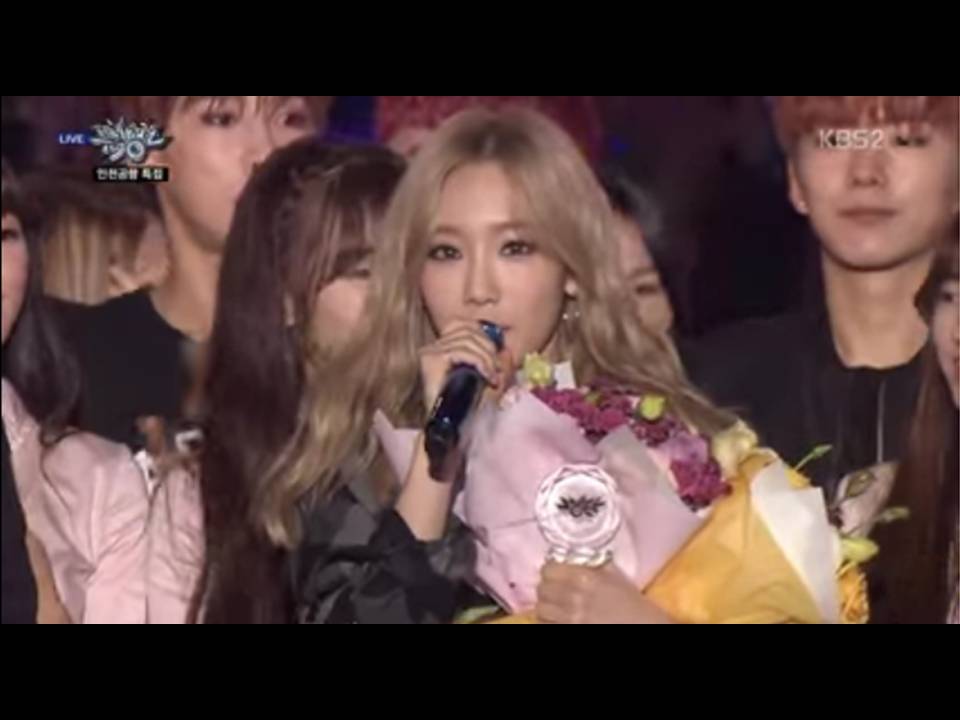 On KBS' 'Music Bank,' many witnessed when Seunghee handed Taeyeon her bouquet of flowers after the announcement of the latter's 3rd win for her solo title track 'I.' Seunghee was appreciated with what she did, and netizens didn't let happen that she will not be recognized for that.