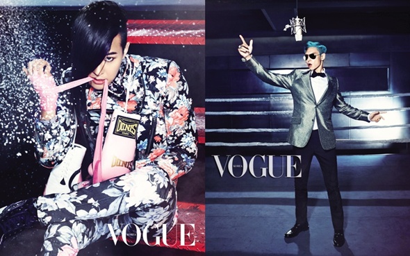 Taking a radical transformation from their usual hip hop and chic looks, Big Bang members battled it out to become the king of fashion inside boxing ring. In the few cuts revealed from the March issue of Vogue Korea, members Seungri and Daesung get into a boxing match. G-Dragon and Taeyang are the managers of each boxer, while T.O.P becomes a dandy referee.