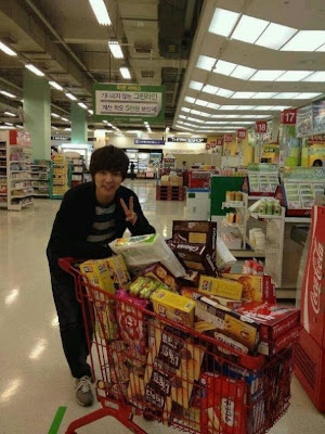 Minhyuk shared the photo above on his Twitter account and wrote "Last night I went shopping at the mart!! Picked up this and that to send to my friends in the army. Hehe. Soon, CNBLUE drummer Minhyuk and “playboy” Segwang will come to you.. Be careful of the cold!!"