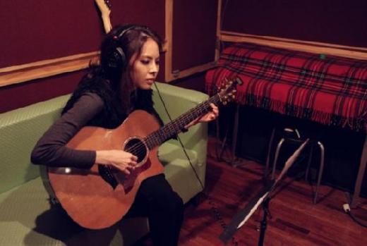 On February 7th, 30-year-old singer updated her Twitter, "“Last day of recording. ^^", and uploaded a photo of herself playing the guitar.
