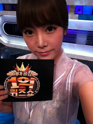 T-ara's Soyeon's selca for SBS 100 million Quiz was uploaded on the internet.