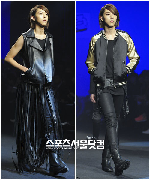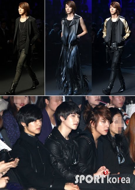 The fashion show attendees include CNBLUE members Jung Yonghwa, Lee Jonghyun and Kang Minhyuk and also the ultimate fashionista, Jang Geun Seok. CNBLUE member, Lee Jungshin in particular, has gained a lot of attention as he modeled on the runway. He sported the “grunge look” in his costumes and managed to finish the show nicely.
