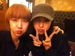 Sunday uploaded photos of her with Sistar's Bora on her twitter. The "Bora" sisters took a selca together!