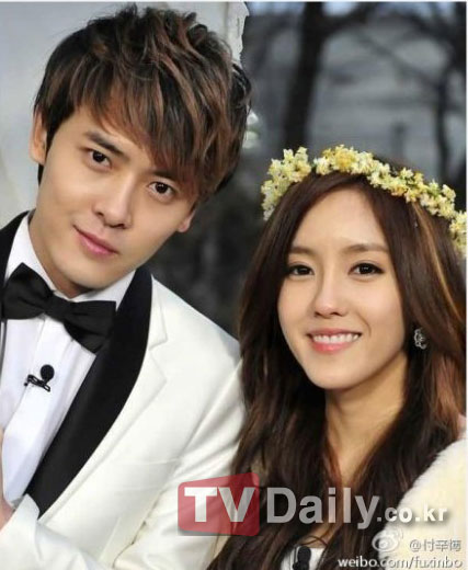 We reported earlier that T-ara's Hyomin will be appearing on the Chinese version of "We Got Married" alongside virtual husband Fu Xinbo of Chinese pop group, BoBo. Prior to that, the show released a couple photo featuring Hyomin and Fu Xinbo in their tux and wedding dress.