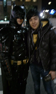 He shared the picture below and he said "Oh! Few days ago, I met Batman in the street n asked him for a pic. U know wt? He spoke to me in KOREAN! DAE~~BAK LOL!!"