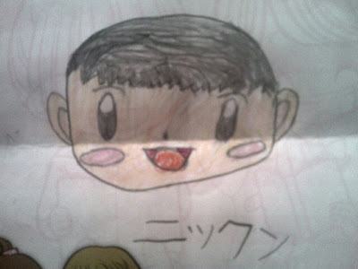 On December 28th, Nickhun tweeted the photo above and wrote "My cute little fan drew this for me~ =] I see a potential successful artist! Yayy!!!! Arigato ^^yfrog.com/oecr8mzj"