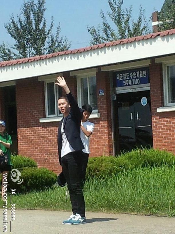 Heechul waved and bowed to fans in less than 2 mins before entering the training center to officially start his military training. But before that he ate in the nearby restaurant with his parents. Jungmo,ZhoMi and his manager also came to send him off