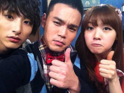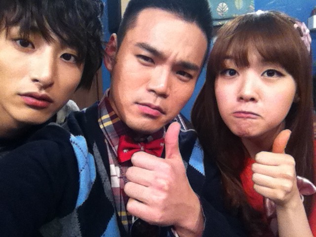 On the 19th of January, Minah tweeted new pictures with the casts of Vampire Idol. She tweeted the pictures with a caption "A fun “click, click” while in the filming set. hee hee >_< Tomorrow we have an outdoor shoot so everyone let’s stick hot packs in our clothes.!!! Ah Pa-ee-ring~♥♥"