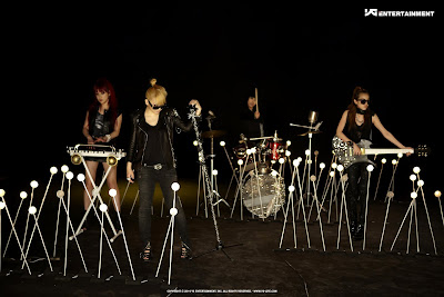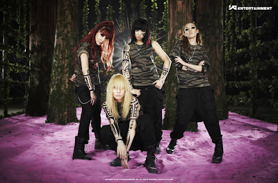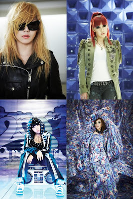 2NE1 in wild, tribal looks. Though I love the uniformity of this look, but only Minzy and CL managed to carry-off the looks (Park Bom and Dara still looked too feminine for this styling).