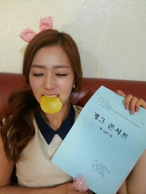 In the picture, Yoon Bomi has her eyes closed and she is biting on to a radish whilst holding the ‘Gag Concert’ script in her hands. Lovely Yoon Bomi's expression captured attention.