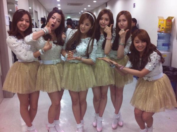 The girls of A Pink won the newcomer awards on the 2012 Gaon KPop Awards,the cute girls of A pink are seen posing cutely at the backstage.