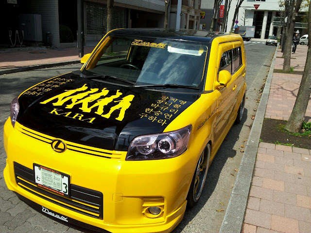 As shown in the photo above,it is obvious that the owner of this car is a huge fan of KARA,the car is painted in yellow,which is KARA's official fanclub KARA.
