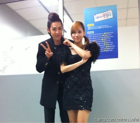 Miss A's Fei shared a selca taken with U-Kiss Alexander on her own Cyworld account.