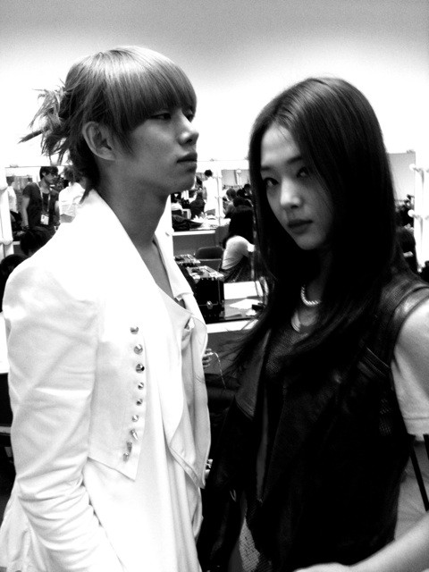 HeeChul uploaded a new photo taken together with Sulli on his Twitter,i guess Sulli is the only person who enjoy doing all those dorky things with HeeChul,she looks fierce here,a bit scary...